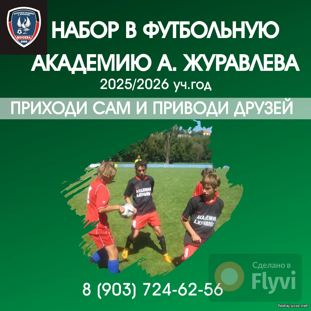 Футбольная Академия А. Журавлева проводит набор обучающихся на 2025-2026 уч.год.